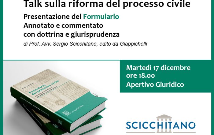 Talk sulla riforma del processo civile e presentazione del Formulario del processo civile del Prof. Avv. Sergio Scicchitano